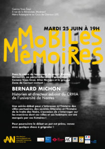 Dans le cadre du lancement de son projet MOBILES MEMOIRES, le groupe Zone de Contact et Alter Natives vous invitent à la deuxième soirée-débat autour de l’histoire de villes portuaires (Nantes, Le Havre, La Rochelle) traversées par les thématiques de la migration, de la translocation et des échanges multiculturels.