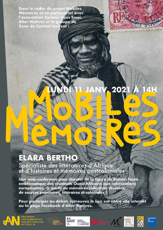 En Live, une webconférence avec ELARA BERTHO pour découvrir et échanger autour de la figure de SAMORI TOURE, emblématique des résistants Ouest Africains aux colonisations européennes.