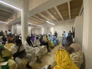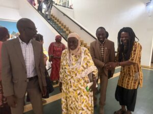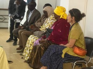 Devant un large public issu des communes de Ngaye, Coki, Samba Sadio, et Ouro Mahdiyou et d’étudiants de Saint-Louis,  nous avons pu entendre les interventions de la représentante de la mairie de Saint Louis, de Mme Penda Ba, ajdointe au maire de Coki, de Mohamed Kane, archiviste et représentant du gouverneur de Saint-Louis, de Sarah Camara, directrice de l’Institut Français de Saint-Louis et d’Abdoul Sow, directeur du CRDS, mais aussi des représentants des communautés héritières directes de cette histoire : Thierno Ibrahima Ba, le porte parole du Khalife d’Ouro Madiyou et Serigne Magaye Gaye, l’Imam de Gaye.